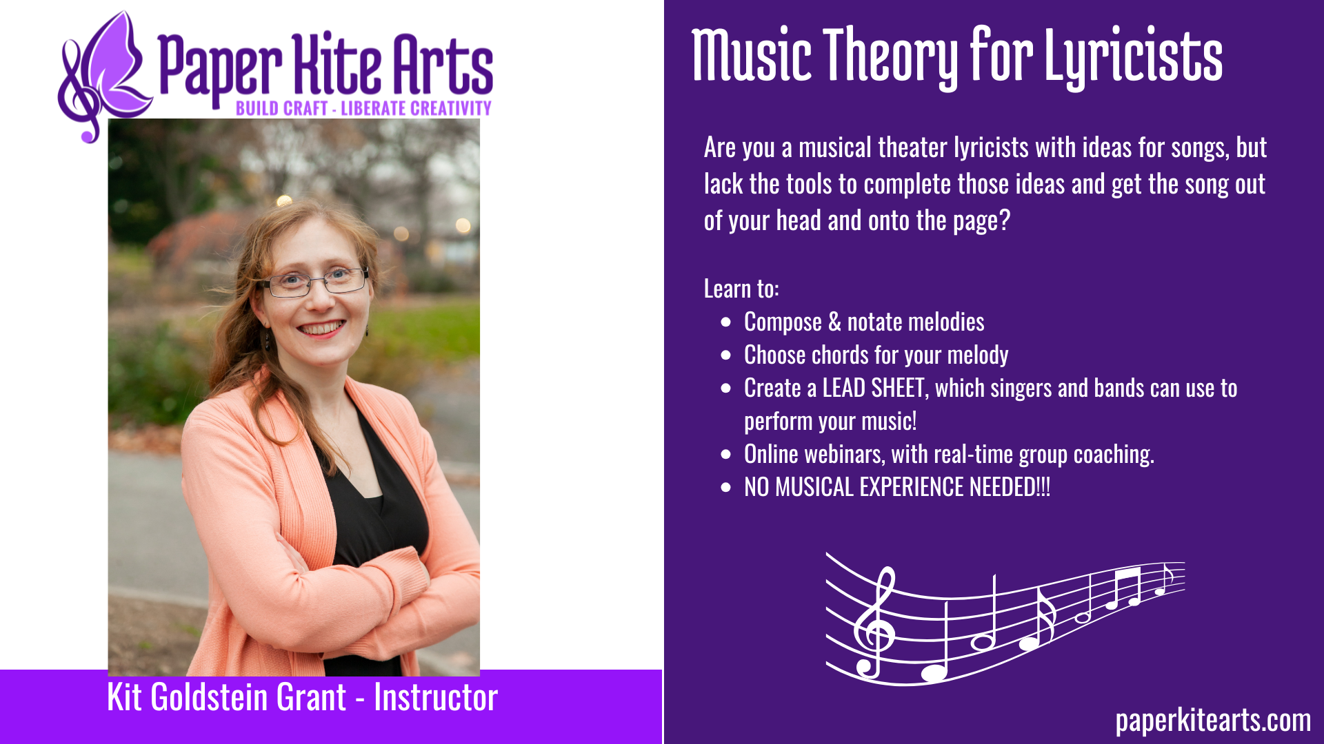 A: This class will largely focus on the musical side of things, but will include some guidance on lyric writing as well, to help you complete your AABA song!